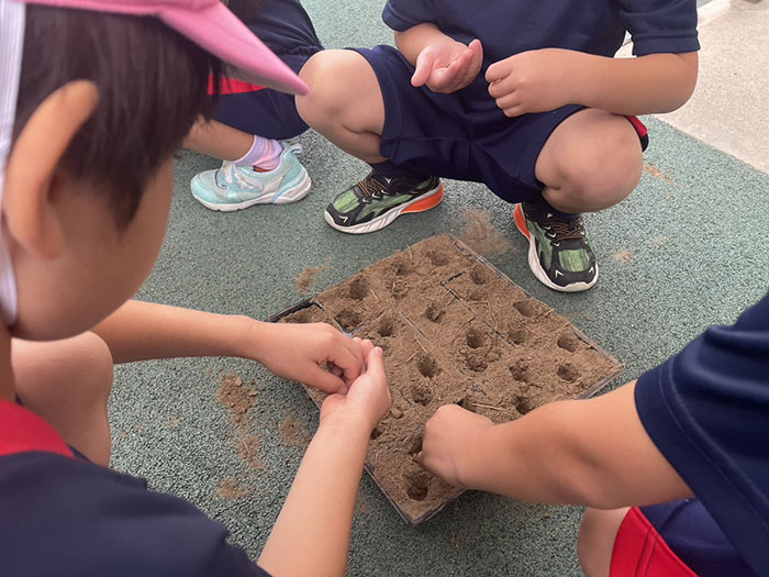 大根を育て始めました 2025.10.16 2025年度 Blog ミドルクラス全員で、畑に植える大根を種から育てる取り組みを始めました。 最初はこんなに小さな種。 大事に育てていきましょうね! ジュニアクラスの公園遊び 前の記事 キンダークラスのクッキー作り 次の記事