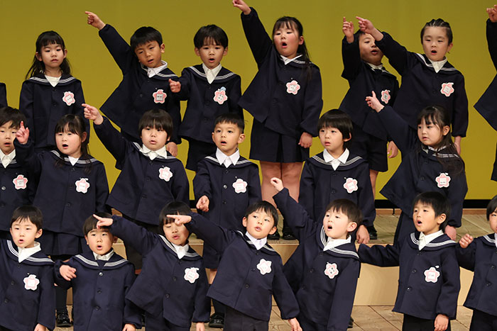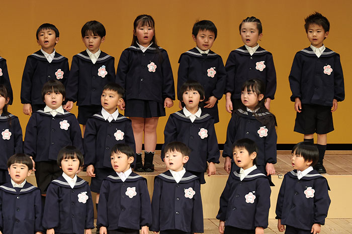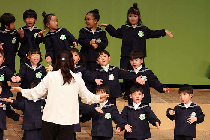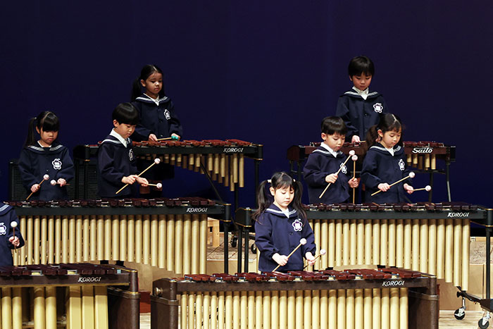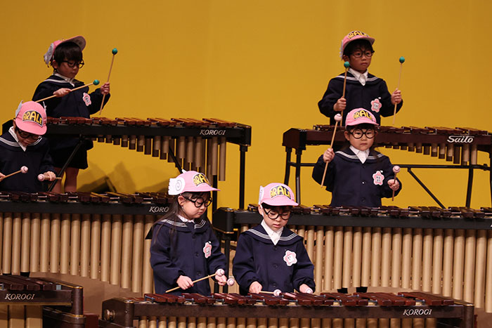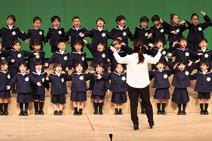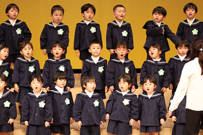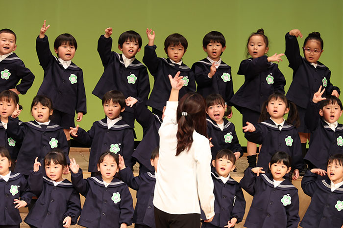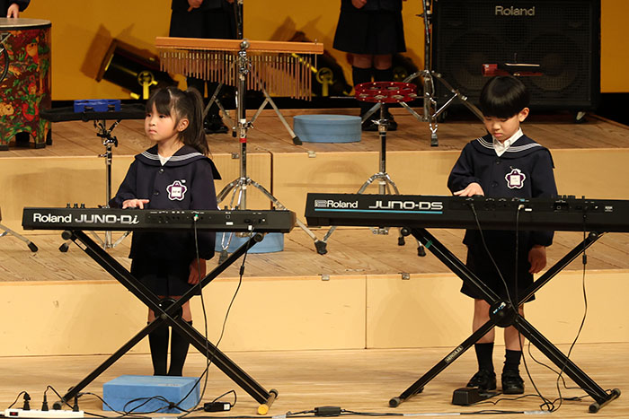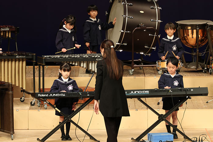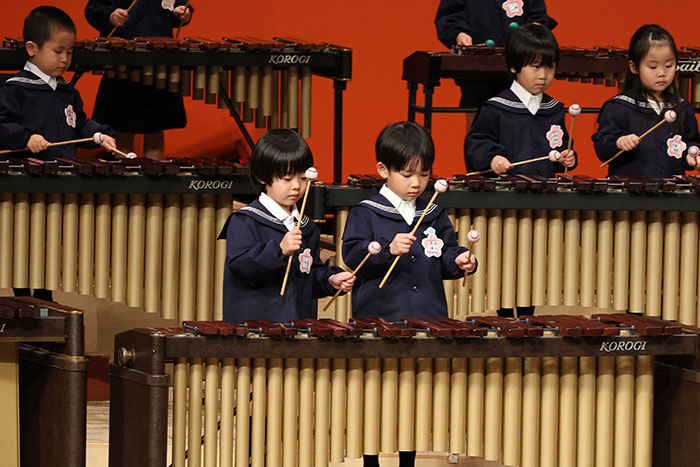 ライブオンステージ 2025(器楽合奏・合唱) 2026.01.28 2025年度 Blog 年間行事 今年も見応えのある素晴らしいライブオンステージでした。 キンダークラスは、自分達で選んだ楽器を一生懸命練習しました。 目を瞑って聴くと、とても園児が演奏しているとは思えない素晴らしい演奏をしてくれました。 ミドルクラスも初めて楽器を使い、上手に合奏ができるようになりました。 ジュニアクラスは一生懸命覚えたキラキラ星等をピアニカで演奏できました。 お歌はみんな綺麗な声で音域広く、上手に歌うことができましたね。 子どもたちの一生懸命な歌声には毎年本当に感動的します。 遊戯では、こだわりの衣装に身を包んだ子ども達が息のあった演技をしてくれました。 男の子の力強い演技、可憐な女の子。 キンダークラスの子ども達は、園最後のステージを華やかに彩りました。 ミドルクラスさんもジュニアクラスさんも、とても上手に一生懸命がんばりましたね! エンジェルさんは衣装を着て立っているだけで可愛いですが、本当に上手にできました。 みんないっぱい褒めてもらったと思います。 第一部:器楽合奏、第二部:合唱の様子です。 かみかみおやつ♪ 前の記事 ライブオンステージ 2025(遊戯) 次の記事