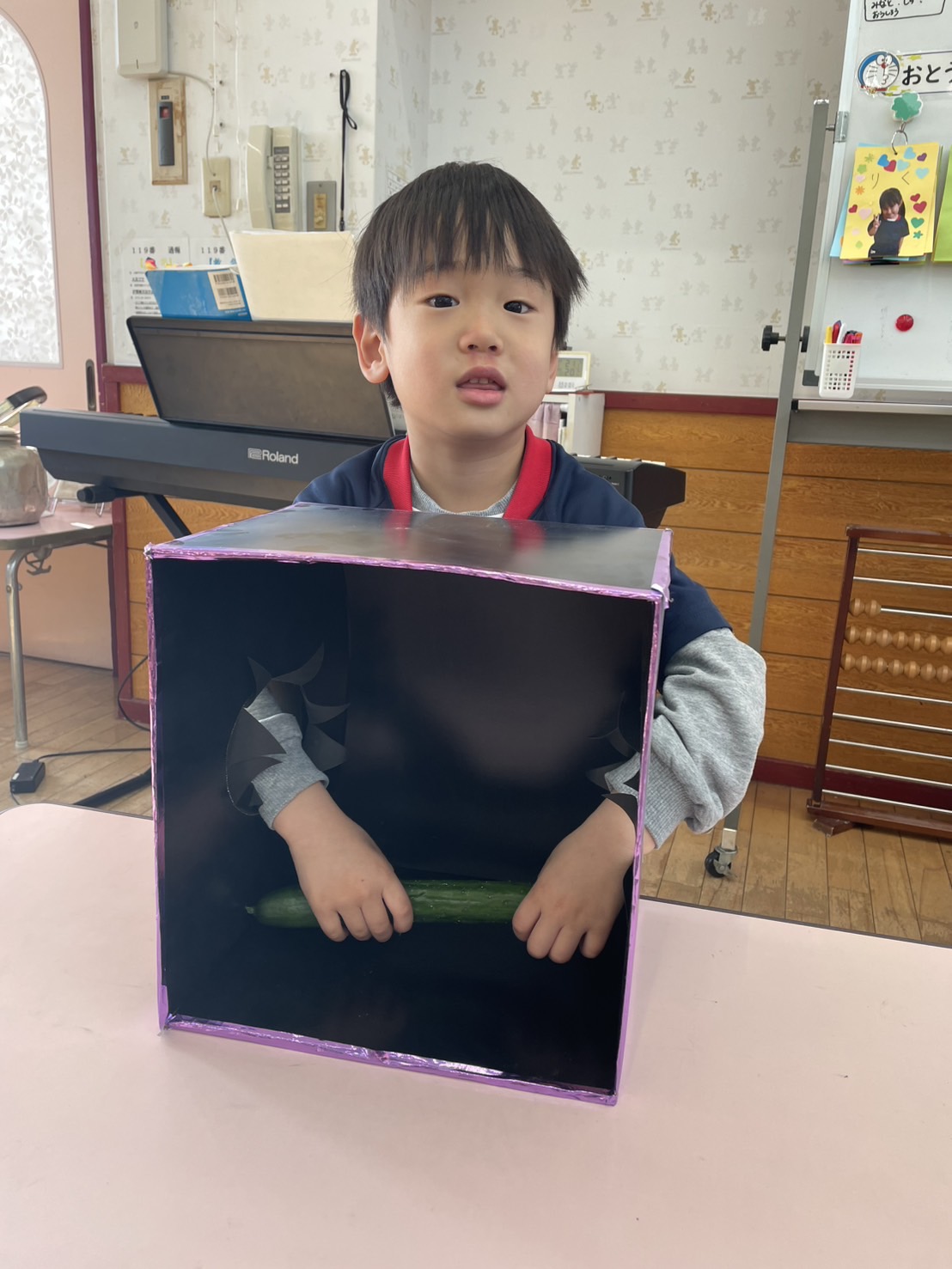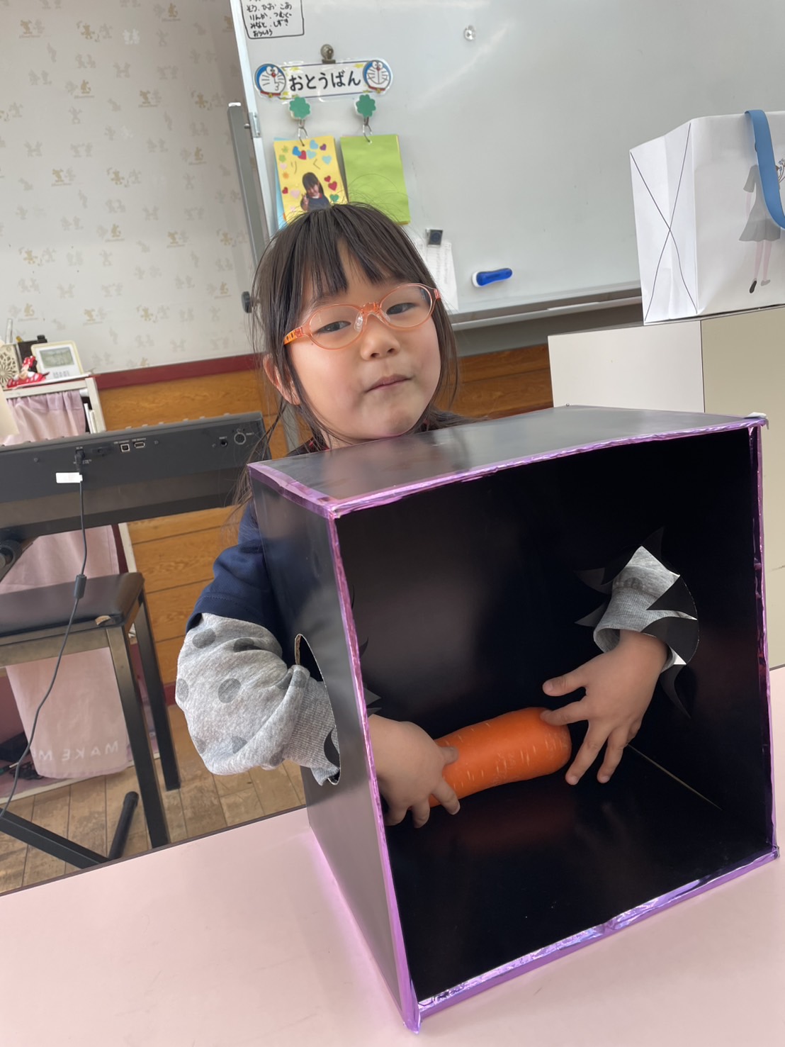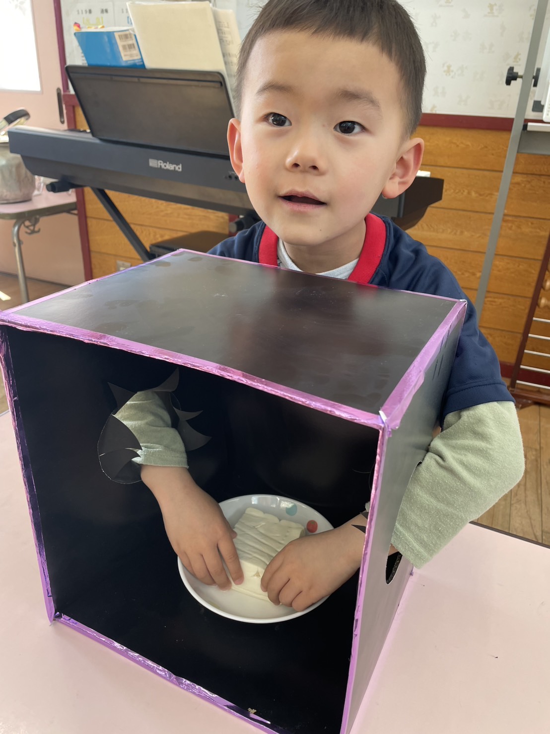 箱の中身当てゲーム 2026.02.17 2025年度 Blog 食育 ジュニアクラスが箱の中身はなんでしょうゲームをしました。 ジュニア2組さんは2人組で色々と相談しながら答えていました! ふわふわボール作り♪ 前の記事