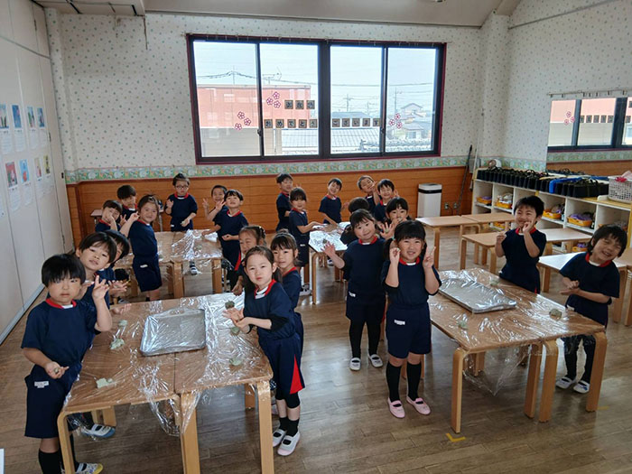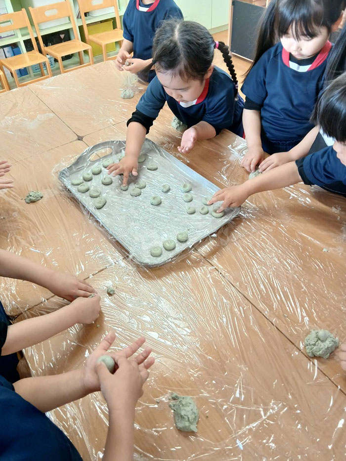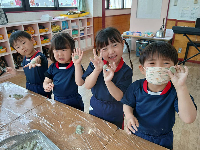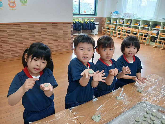 よもぎ団子づくり 2026.04.15 2026年度 Blog 食育 今年度の食育はミドル 、キンダークラスのよもぎ団子作りからスタートしました。 天気も良かったのでおやつを外で食べました。 自分で作ったお団子の味はとってもおいしかったようです。 じゃがいもの種芋植え 前の記事