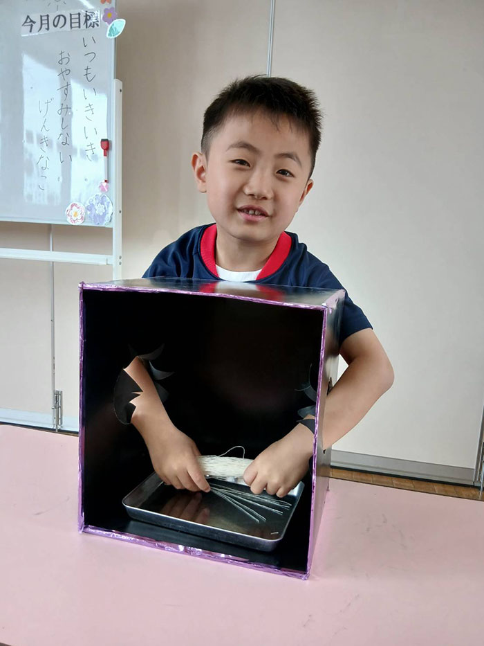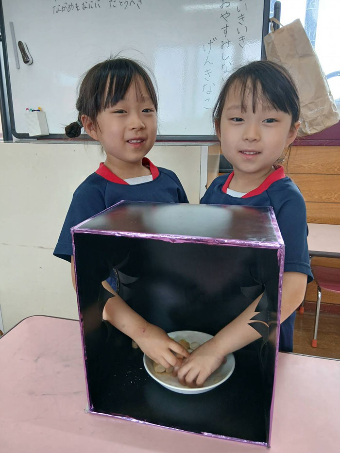 箱の中身はなんでしょうゲーム 2026.04.22 2026年度 Blog 食育 キンダークラスが食育で箱の中身はなんでしょう?ゲームをしました。 今日のお昼の食材のタケノコや春雨など、去年よりも少し難しくしましたが、結構正解が出て驚きました! さすがのキンダークラスですね♡ 次回は6月に行いたいと思います。 ピーマンの苗植え 前の記事