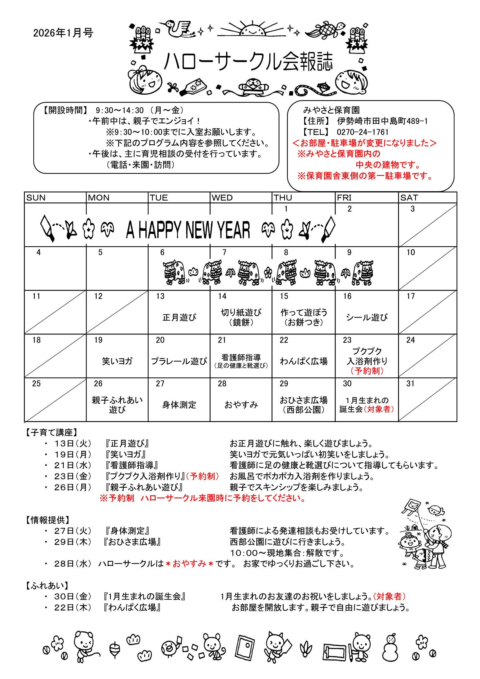 ハローサークル1月号のお知らせ 2026.01.15 子育て支援「ハローサークル」会報誌 2026年1月号を掲載いたしました。 ぜひご覧の上、ご利用ください。 子育て支援ページ Post Share LINE note この記事のタイトルとURLをコピーする ハローサークル12月号のお知らせ 前の記事